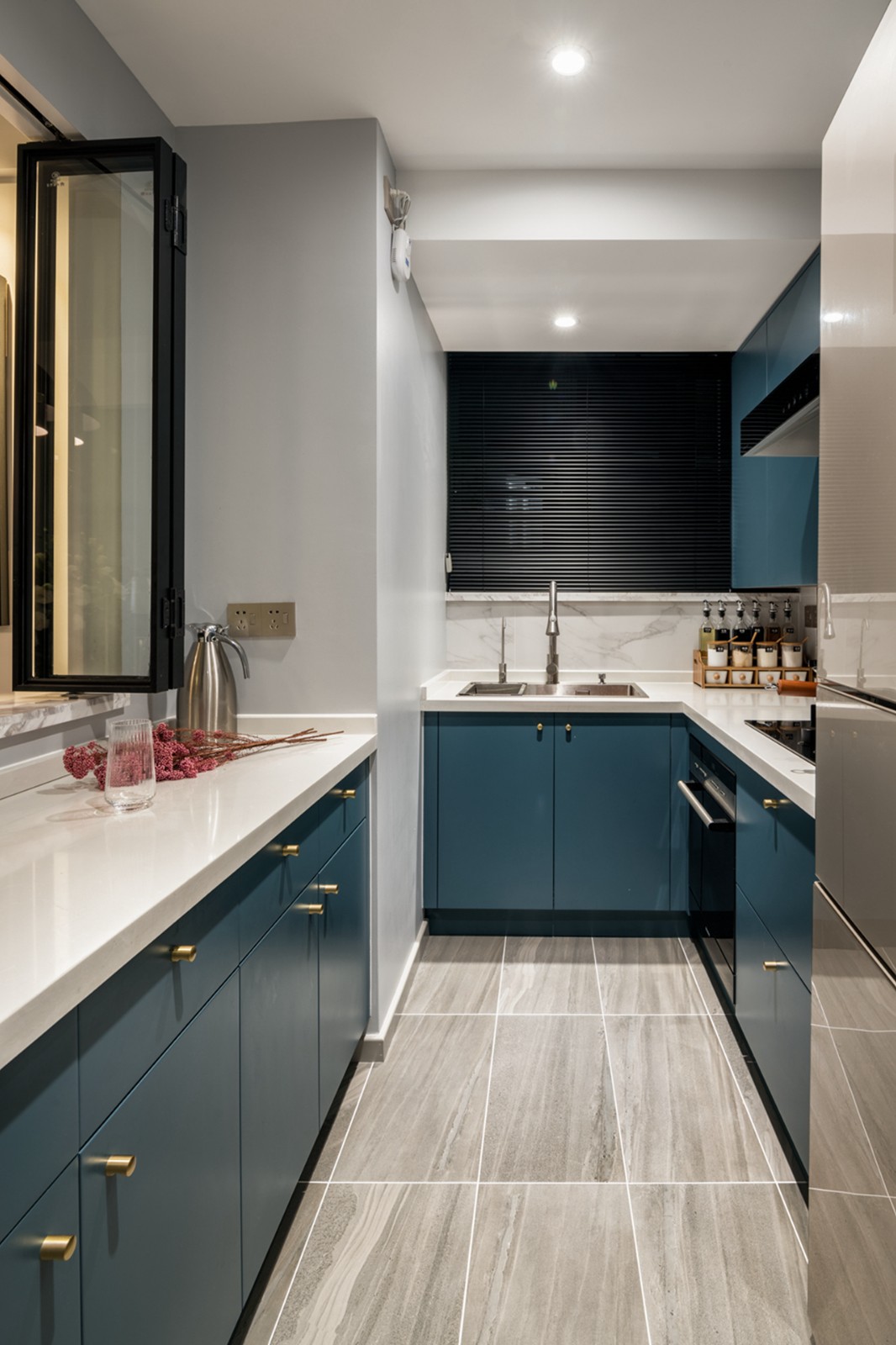 家裝設(shè)計(jì)餐廳裝修效果圖,餐廳和廚房之間的折疊窗,保持了空間的通透性。在日常生活里也起到了便捷的功能,打開(kāi)了廚房和餐廳的交流。