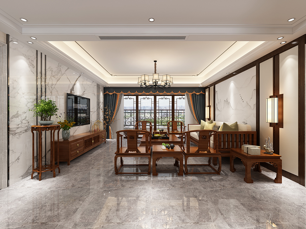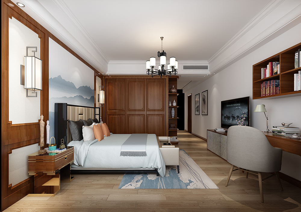 梅州奧園天韻灣四居新中式風(fēng)格裝修效果圖