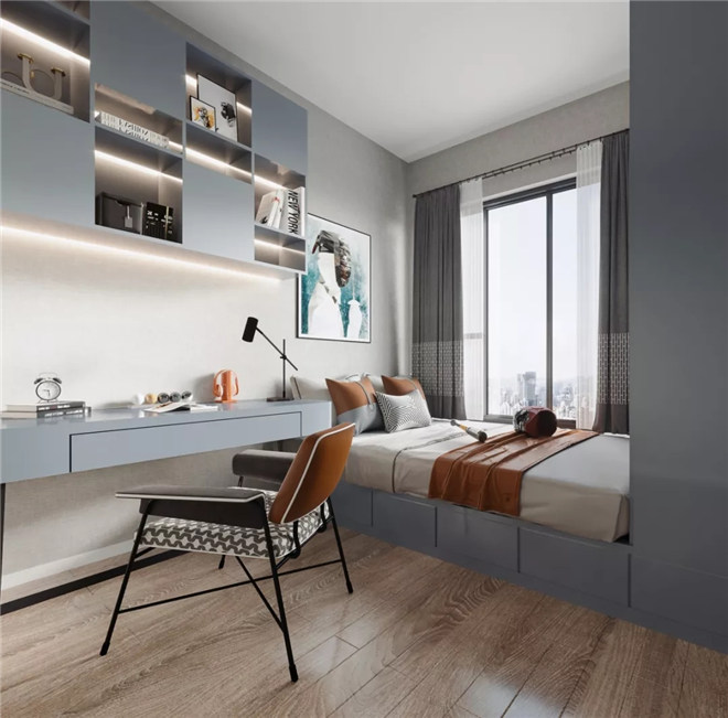 孩子的世界無法用成人的眼光去剖析,不如懷著一顆童心去為孩子也為自己遙遠的童年打造一個理想的世界。墻面固定為莫蘭迪灰蘭色,兒童房的藝術(shù)感搭配,藝術(shù)畫和藝術(shù)擺件,卻能夠帶給你治愈世界的寧靜,開始嶄新的每一天。