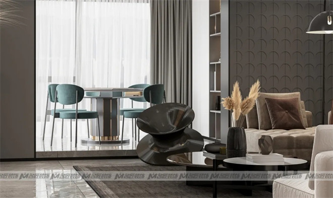 設計師巧妙的布置一組白色的玄關(guān)柜,擺上極具藝術(shù)感與美感的現(xiàn)代擺件作為裝飾,金銀交匯,空間精致感迎面而來,讓人迫不及待地想入室一探究竟!