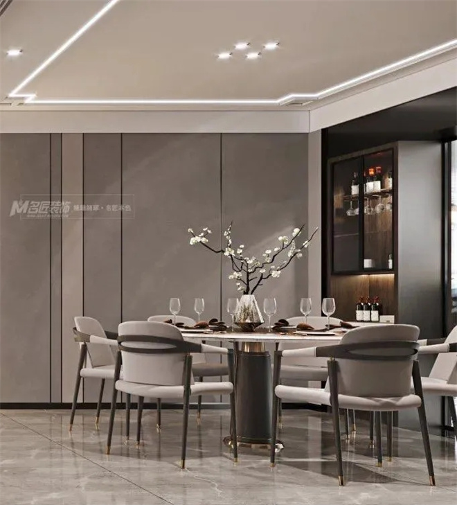 保留氣韻上的筋骨,形式上最大程度地舒適化處理。窄邊細(xì)腿的家具不失為一個(gè)聰明的選擇,視覺(jué)上增加空間通透感,巧妙地將空間“變大”