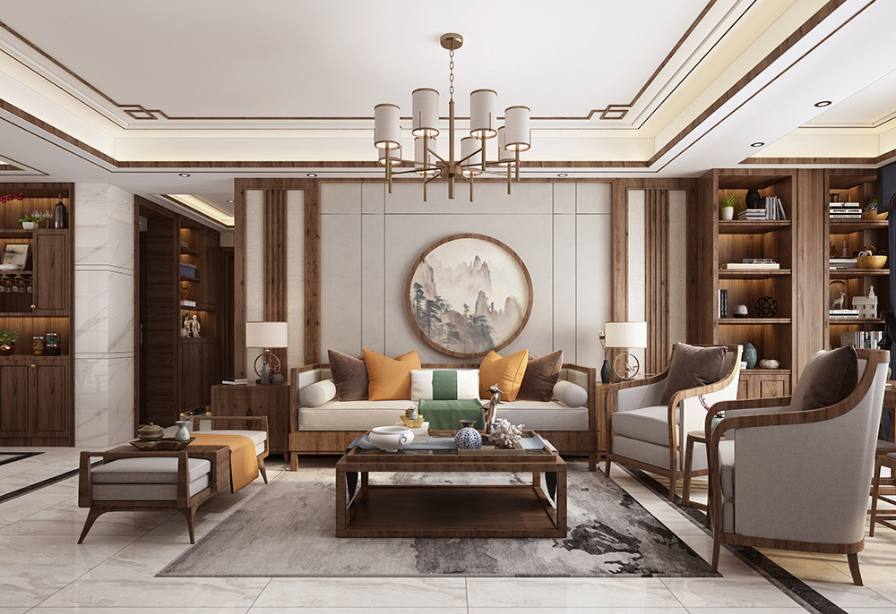 梅州奧園天韻灣四居新中式風格裝修效果圖