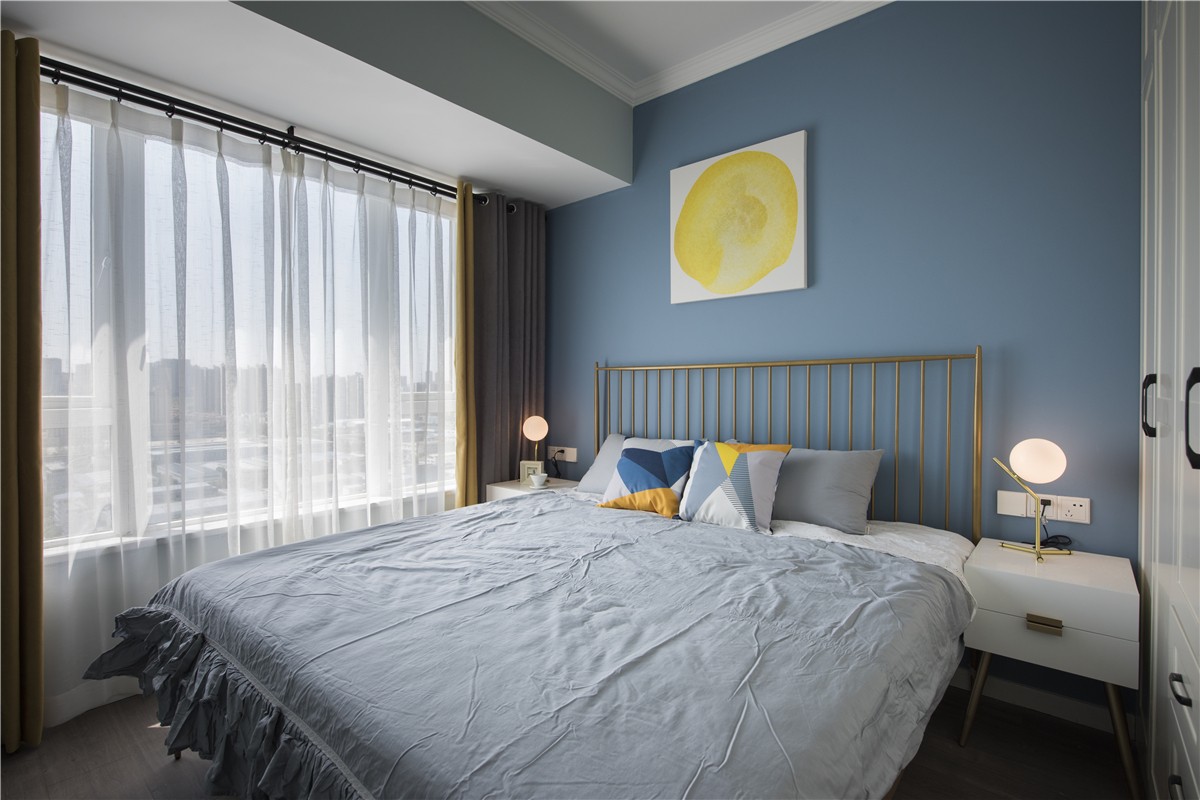 室內(nèi)主臥裝修案例,通過(guò)拆除主臥空間原有的飄窗來(lái)擴(kuò)大主臥空間,滿足兩個(gè)床頭柜的需求。