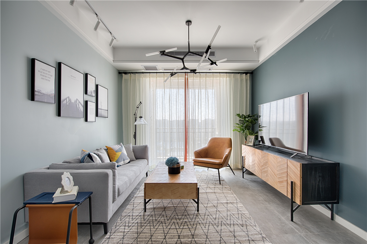 北歐室內(nèi)裝修設(shè)計(jì),客廳采用灰色配臟橘色,穩(wěn)重又不失活躍。選用橘色這樣鮮艷色彩,只需把其降低一個(gè)色度,就讓整個(gè)空間瞬間亮了起來(lái),充滿新鮮感,卻又不突兀。