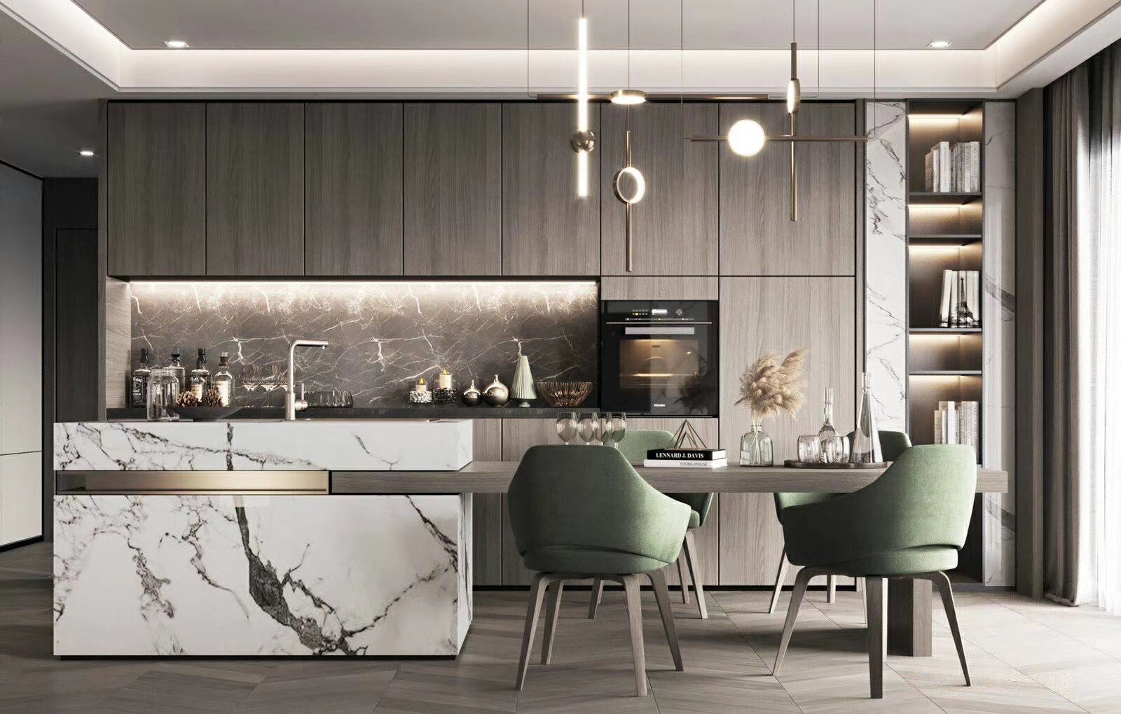 長(zhǎng)夜?jié)u晚,柔和燈光下閱讀一本書(shū),享受獨(dú)處的時(shí)光。飽含詩(shī)意,囊括情感上的共鳴與空間所具備的舒適度,并相得益彰,營(yíng)造出靜謐的藝術(shù)氛圍,從功能上提供舒適的生活環(huán)境,現(xiàn)代美學(xué)于寧?kù)o中優(yōu)雅盛放。