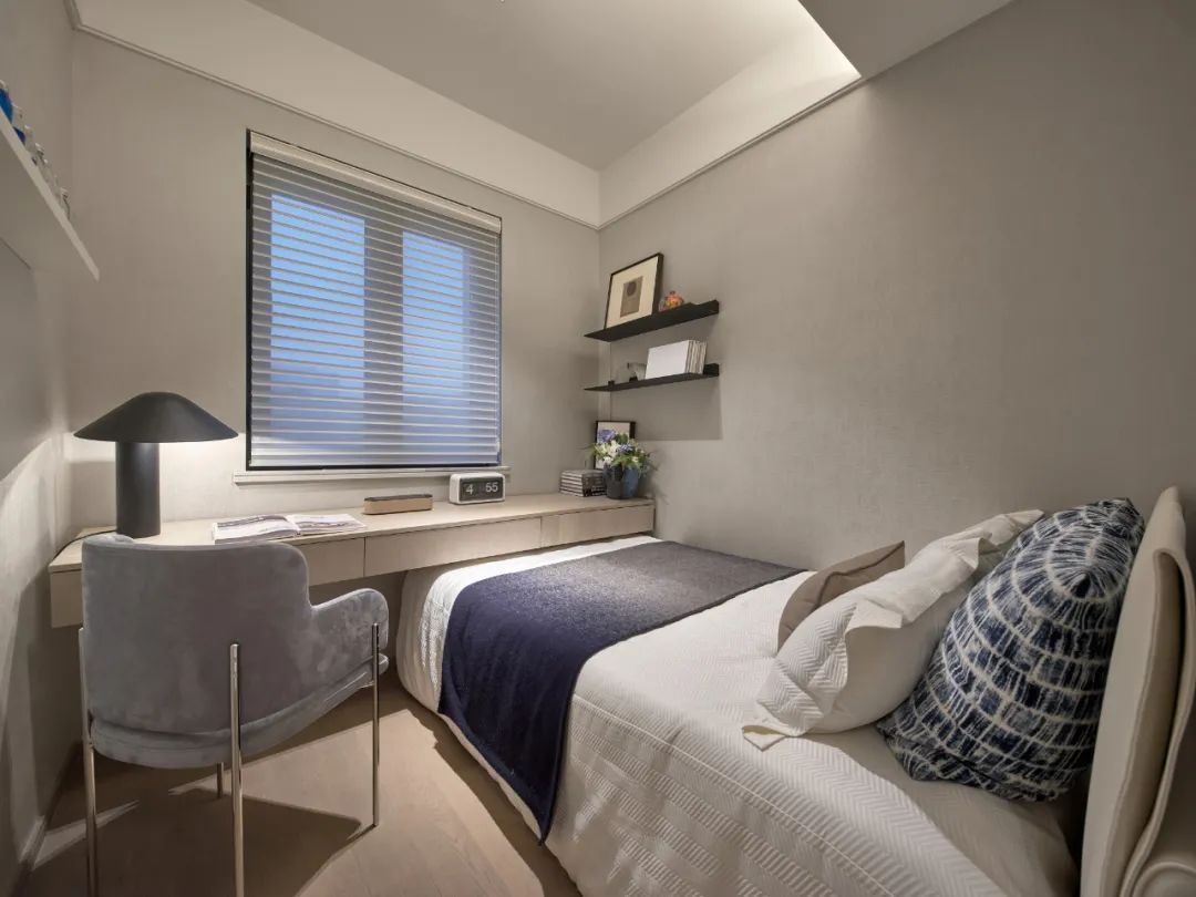 臥室擁有強(qiáng)大的衣帽收納柜,使空間保持著天然的雅致氣質(zhì),美好的一天從衣柜的穿搭開(kāi)始,輕奢淡雅的氣息在空間中久久回蕩。