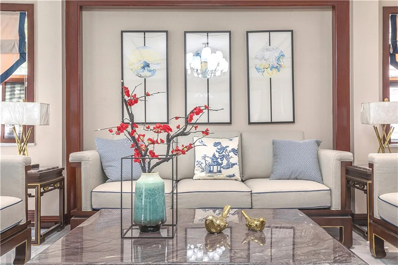 布局方正的布藝沙發(fā)簡雅端莊,別具大宅之家的氣韻,呼朋喚友齊聚一堂,客廳氛圍自然輕松又舒適。