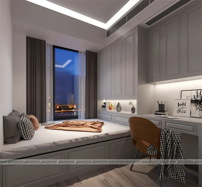 長輩房的設計風格偏向現(xiàn)代簡約,整體呈現(xiàn)自在平和的舒適氛圍,以白色作為主要色調,明亮干凈,給老人創(chuàng)造一個樂觀積極的居住環(huán)境。