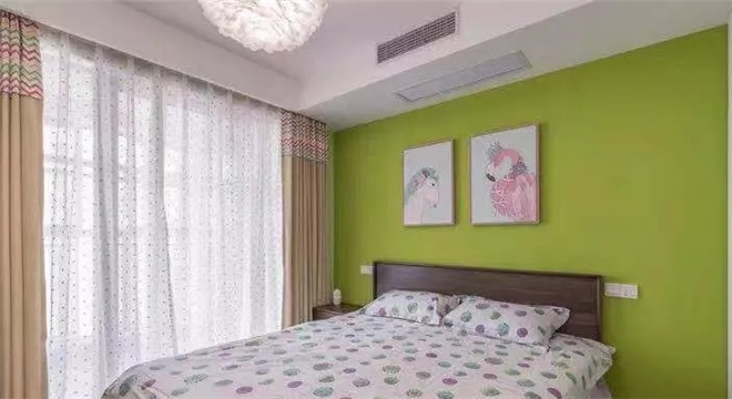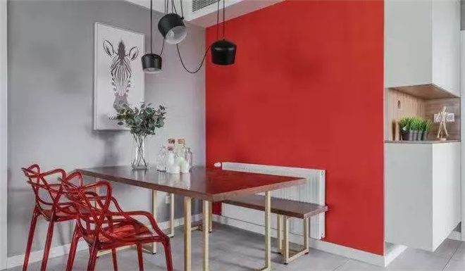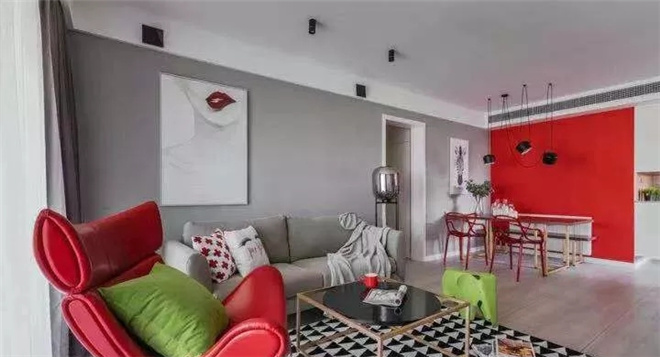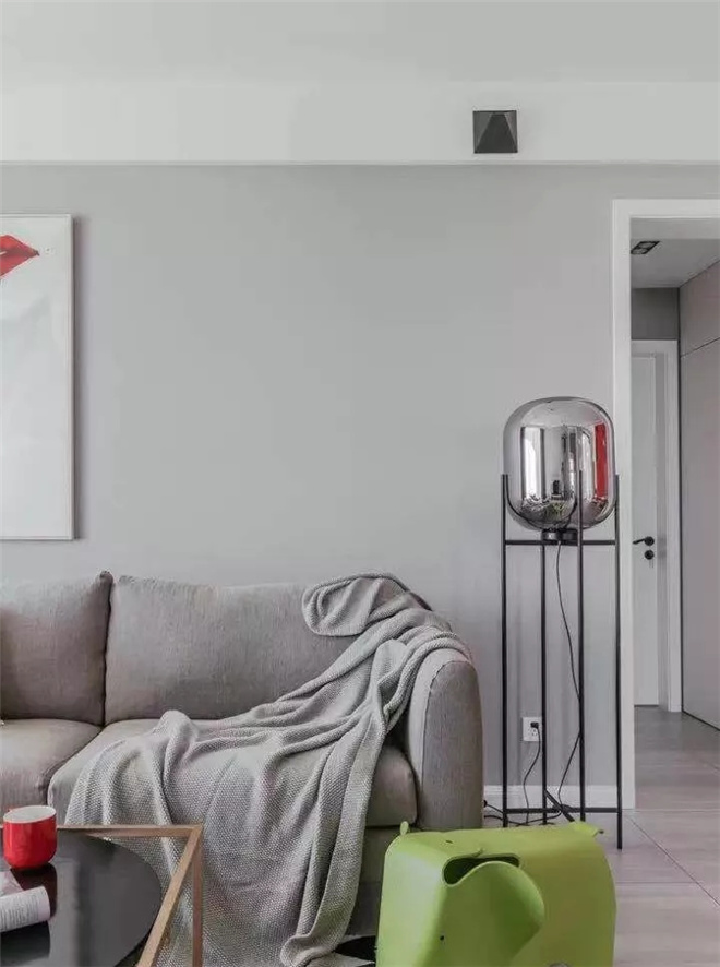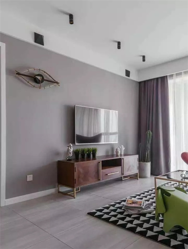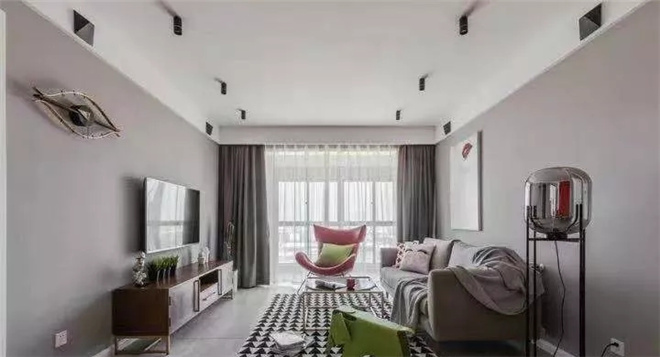 客廳是交友的娛樂中心??梢钥吹秸w線條簡約流暢,點綴色彩對比強烈!客廳的影視墻采用的是淺色乳膠漆打底,既大方又很有氣派。喜歡北歐風格,但又不希望被單調的白色拘束,設計師最終給了小夫妻驚喜。