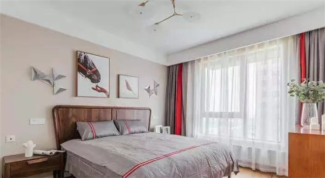 臥室的色彩要與主題相互呼應,這個沒有過多的色彩,布置和家具,沒有喧囂與繁復,一派寧靜悠遠,顯示出業(yè)主溫文爾雅,平和理性的特點。