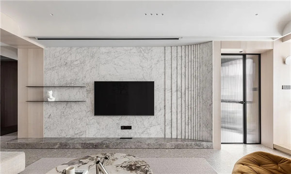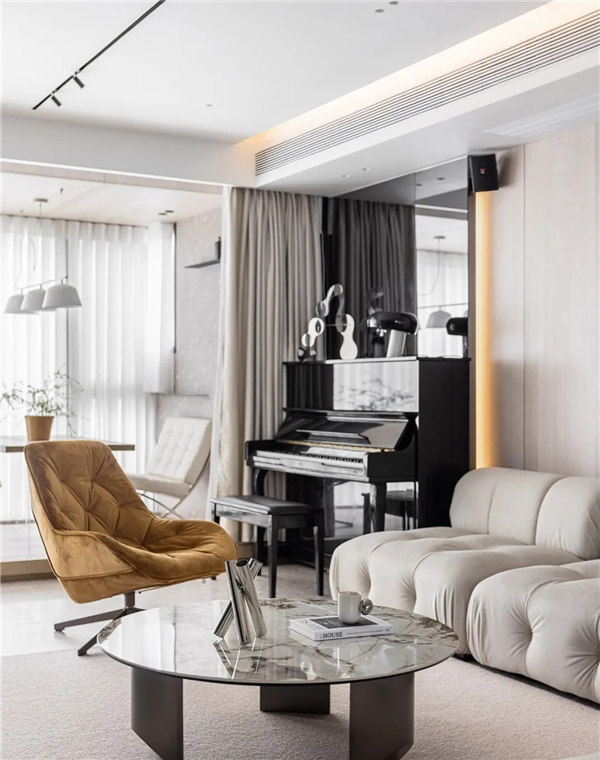 全屋采用無主燈和局部線性燈光設(shè)計,營造放松、溫馨氛圍,整體以白色、淺色的木飾面為主,搭配小面積的鏡面穿插,融合自然紋理的石材點(diǎn)綴,通過對材質(zhì)、細(xì)節(jié)的整合把控,進(jìn)一步達(dá)到對空間本身的塑造以讓心靈找到歸屬