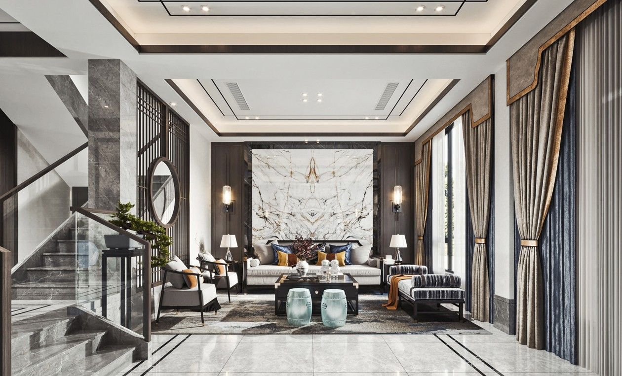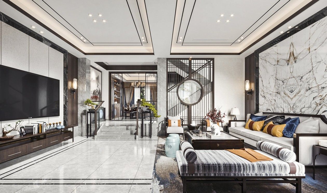 江門碧桂園別墅新中式風(fēng)格裝修效果圖