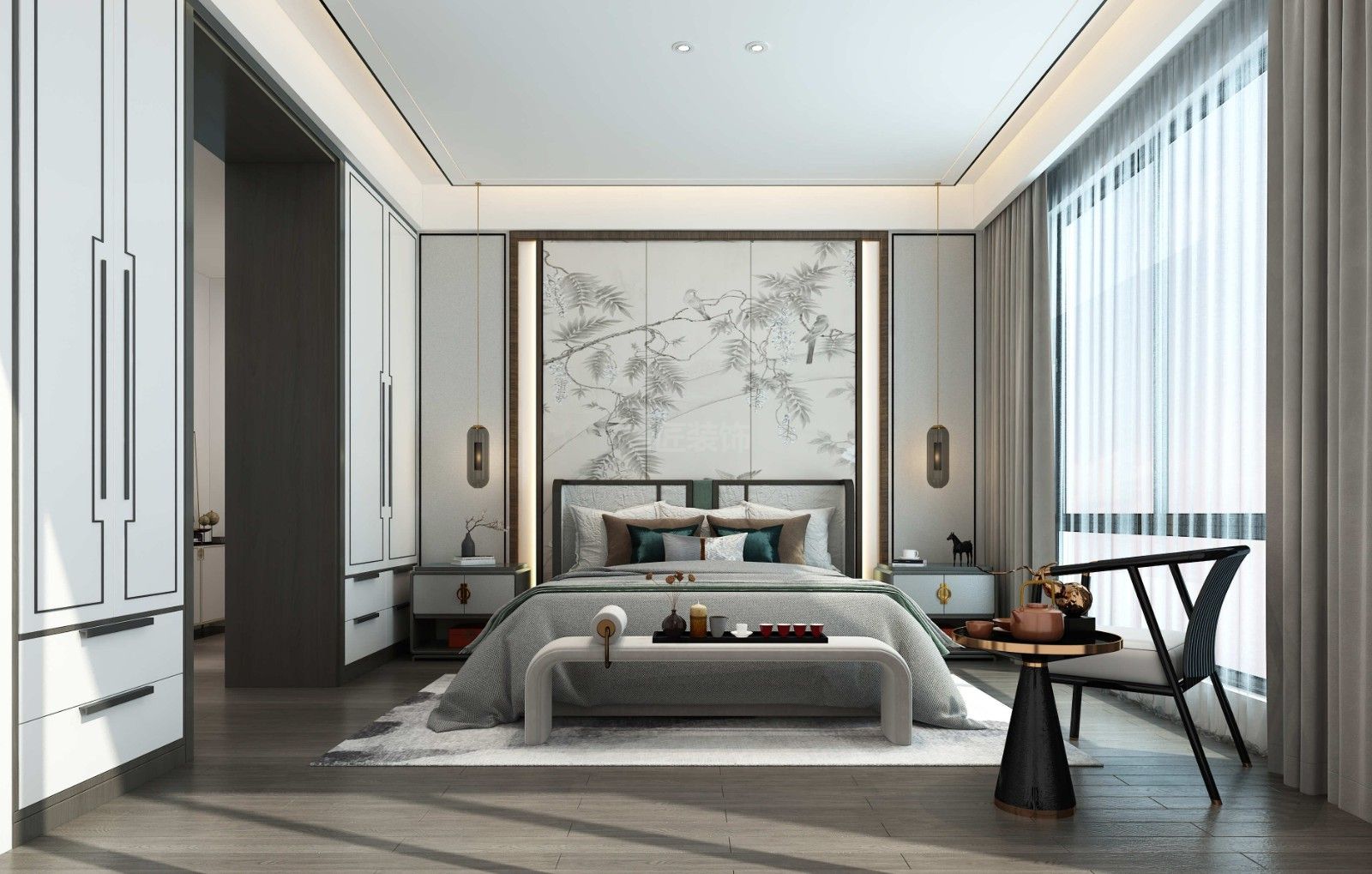 海口長怡花園別墅新中式風(fēng)格裝修效果圖