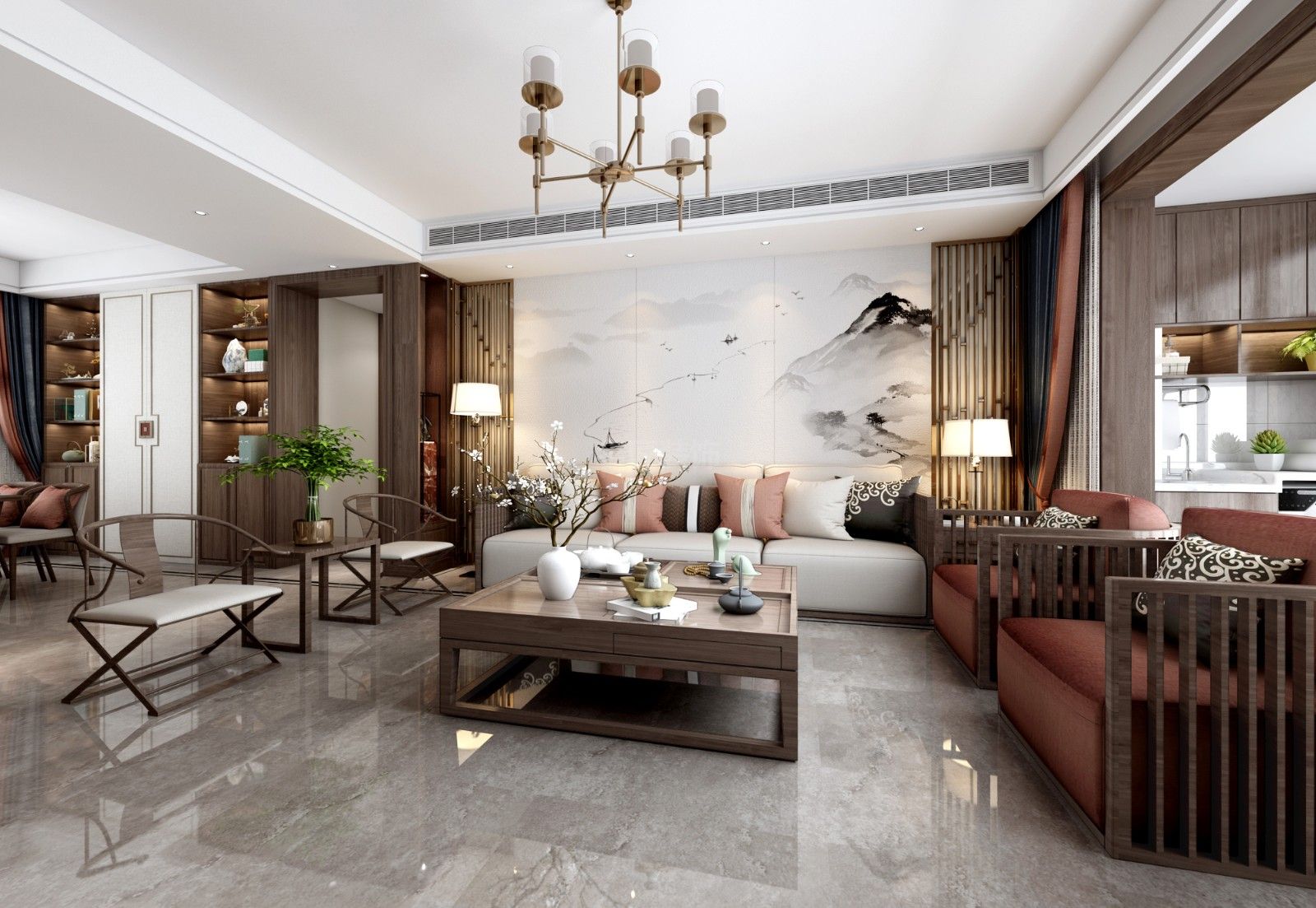 廣州101-200平米新中式風格家裝設(shè)計效果圖