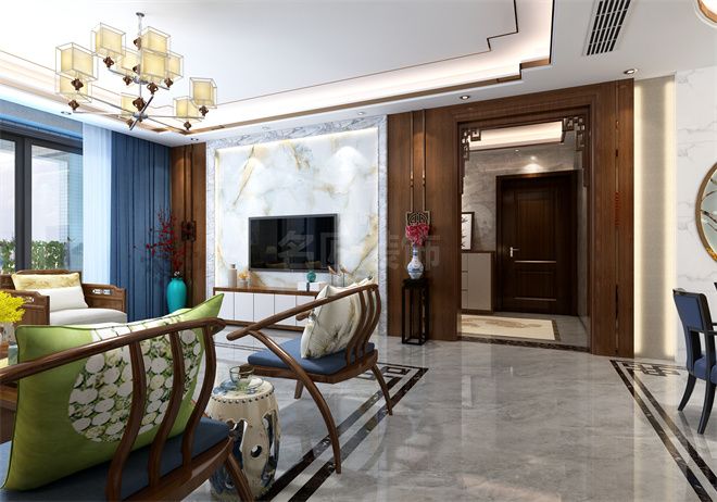 中山豪逸御華庭四居新中式風(fēng)格裝修效果圖