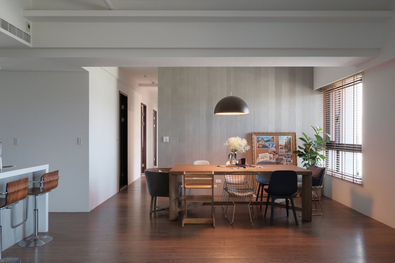 室內(nèi)餐廳裝修效果圖,內(nèi)嵌式餐廳柜,收納日常使用的餐廳物品,錯落有致的格子,更是一種簡約的美。