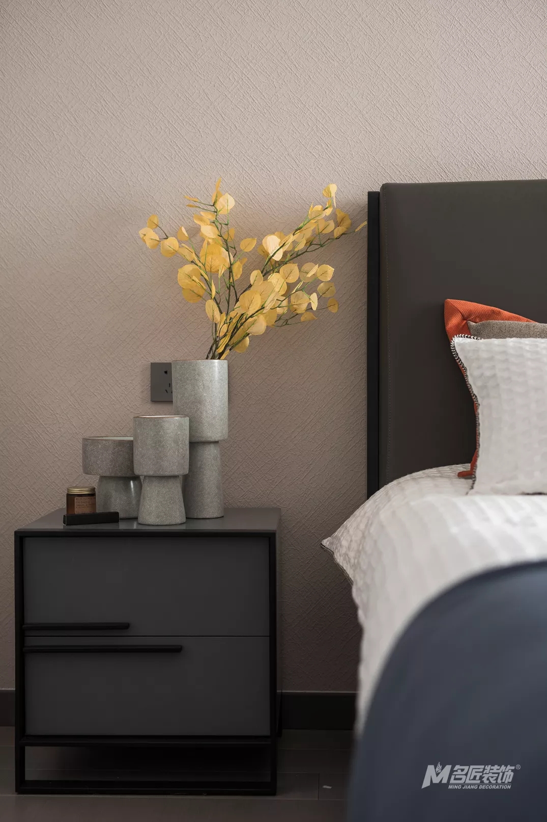 次臥又融入了煙灰藍(lán),與整體高級灰基調(diào)相搭配,空間更顯穩(wěn)重大方,精致優(yōu)雅。