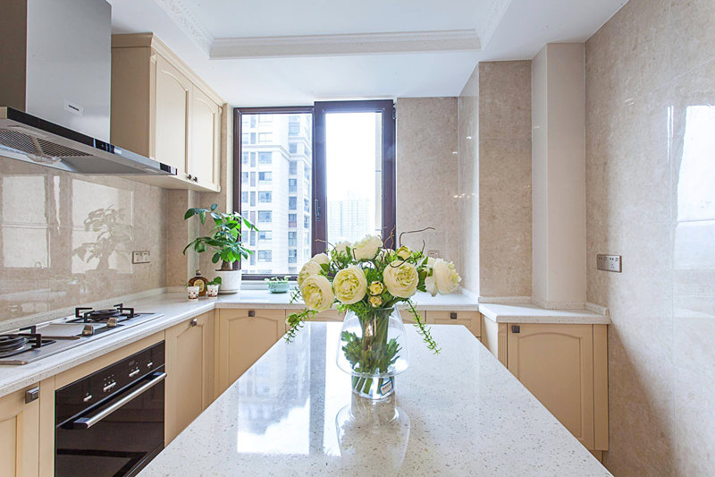 小編建議:石英石臺(tái)面適用于各種風(fēng)格廚房裝修,而且質(zhì)感好,造價(jià)同樣不低,高端的廚房臺(tái)面一般會(huì)選用石英石材質(zhì)。