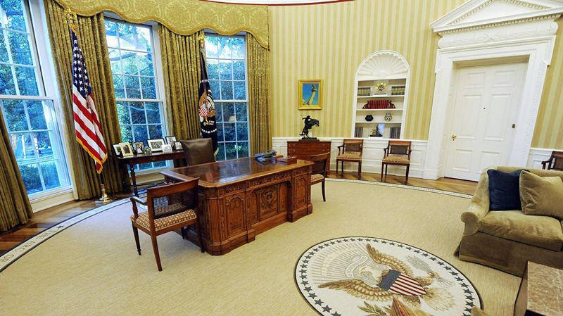 奧巴馬就任后,替換了前任小布什最喜歡的白宮裝飾品,用馬丁·路德·金的半身銅像替代了丘吉爾的半身銅像,采用具有陶瓷質(zhì)感的臺(tái)燈和辦公室風(fēng)格的椅子。