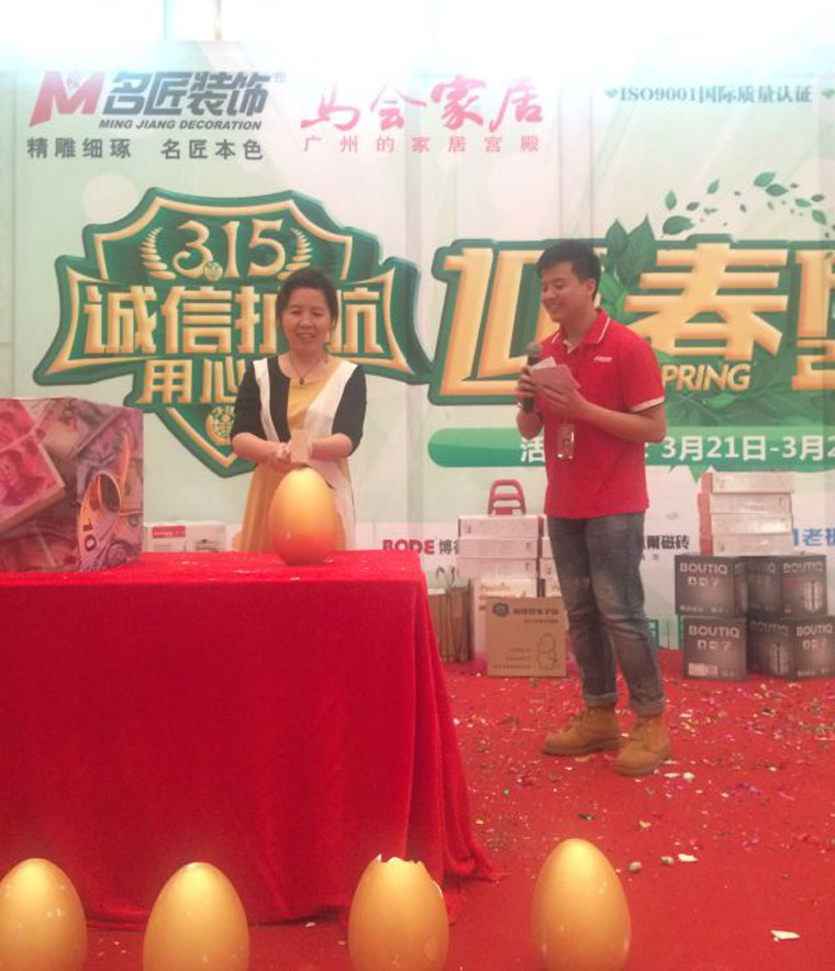 為了感謝羊城客戶對(duì)名匠裝飾20多年來的一貫支持,現(xiàn)場(chǎng)還安排砸金蛋、抽大獎(jiǎng)以及迎春抓錢大行動(dòng)多重大禮包回饋業(yè)主。取得了豐碩的業(yè)績(jī)回報(bào)和提升品牌的美譽(yù)度,打響了2015年內(nèi)部升級(jí)的第一搶!??!