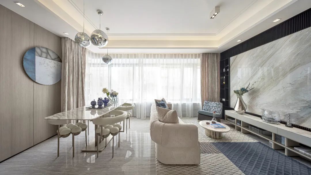 餐廳空間最大程度的地引用了客廳的自然光線,從早餐開始便與陽光相伴,使空間整體通透敞亮大氣嚴(yán)謹(jǐn)。