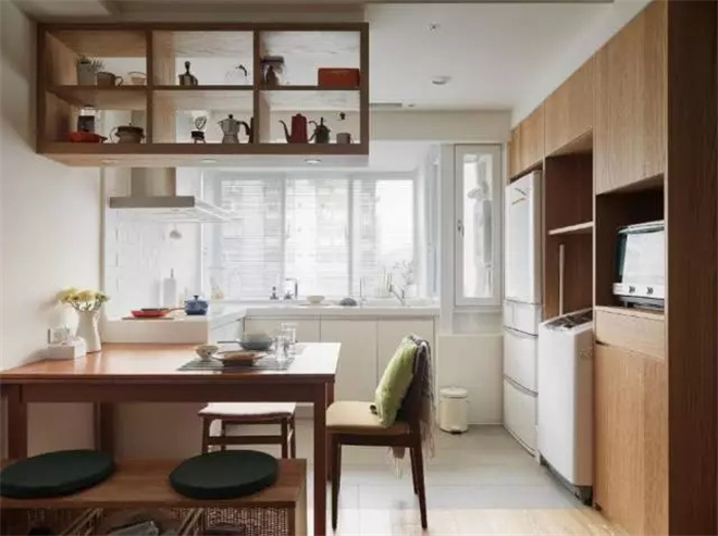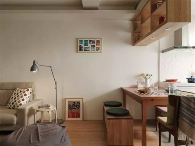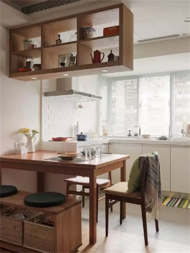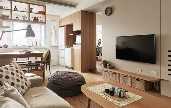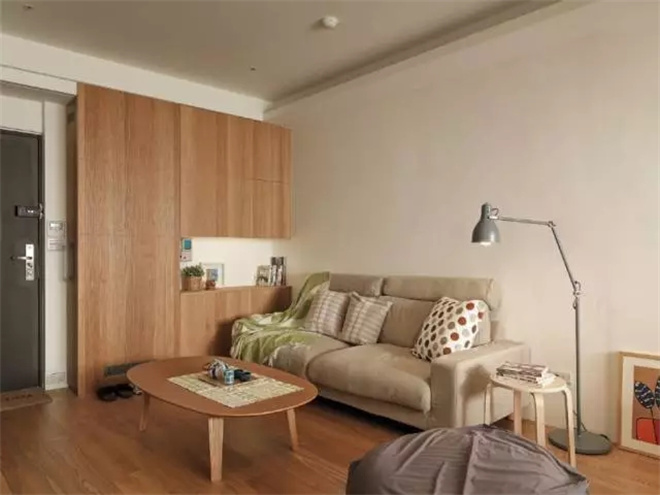 木質(zhì)的柜子更具有生活的氣息,旁邊就是通往臥室的門(mén),推拉式的木門(mén)