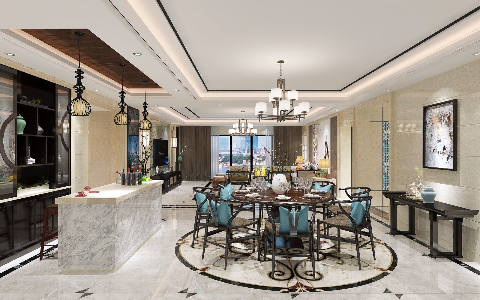 廣州101-200平米新中式風(fēng)格裝修設(shè)計效果圖
