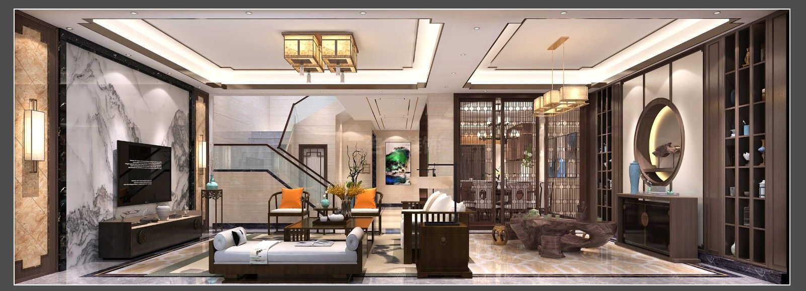 佛山東逸灣翠河澗別墅新中式風(fēng)格裝修效果圖
