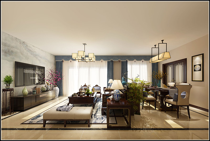 廣州101-200平米新中式風格裝修設(shè)計效果圖