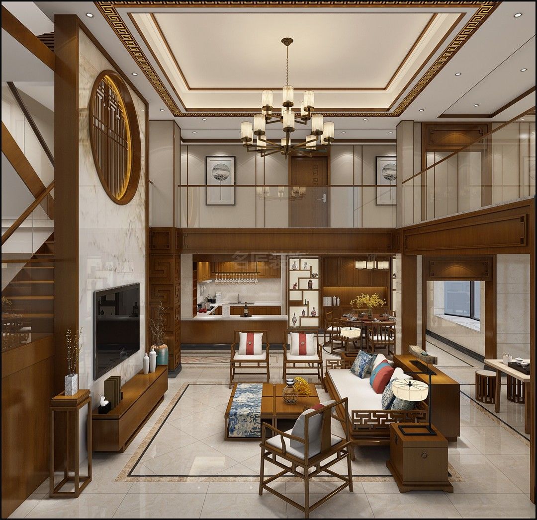 ??阱\繡京江別墅新中式風(fēng)格裝修效果圖