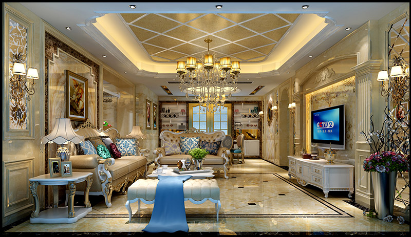 佛山保利中央公館四居歐式風(fēng)格裝修效果圖