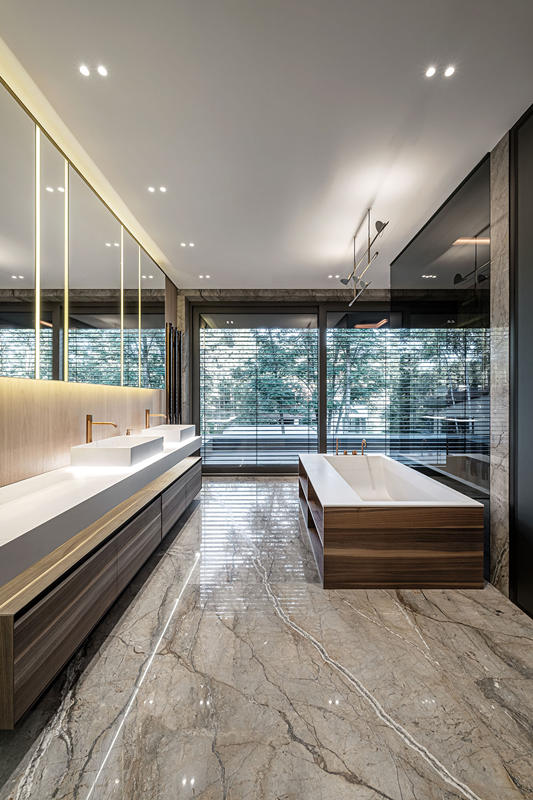 木飾面的沉穩(wěn)溫暖也讓大理石多了幾分樸素的韻味。