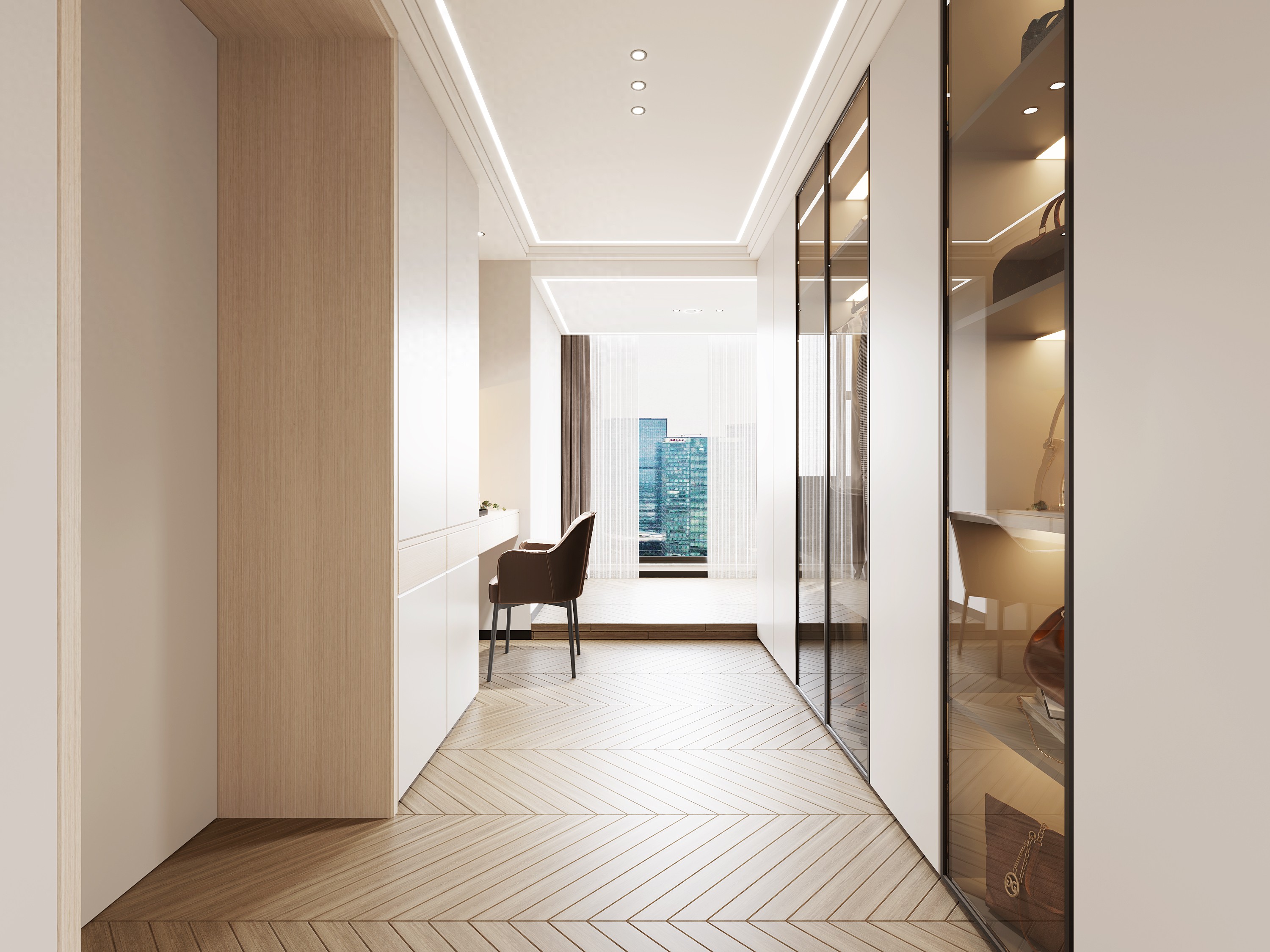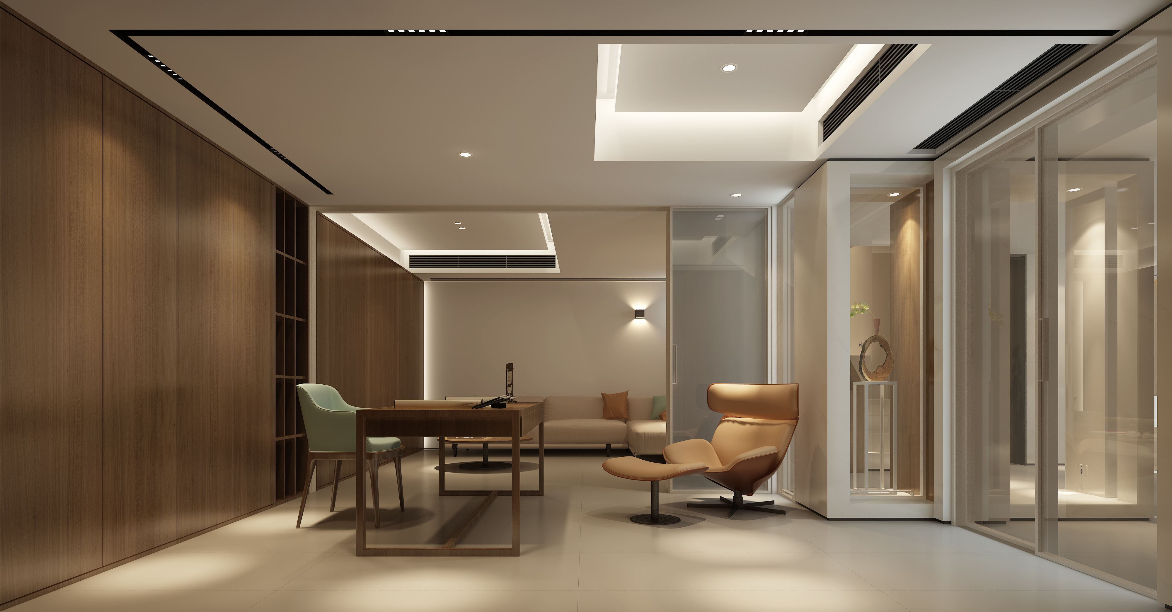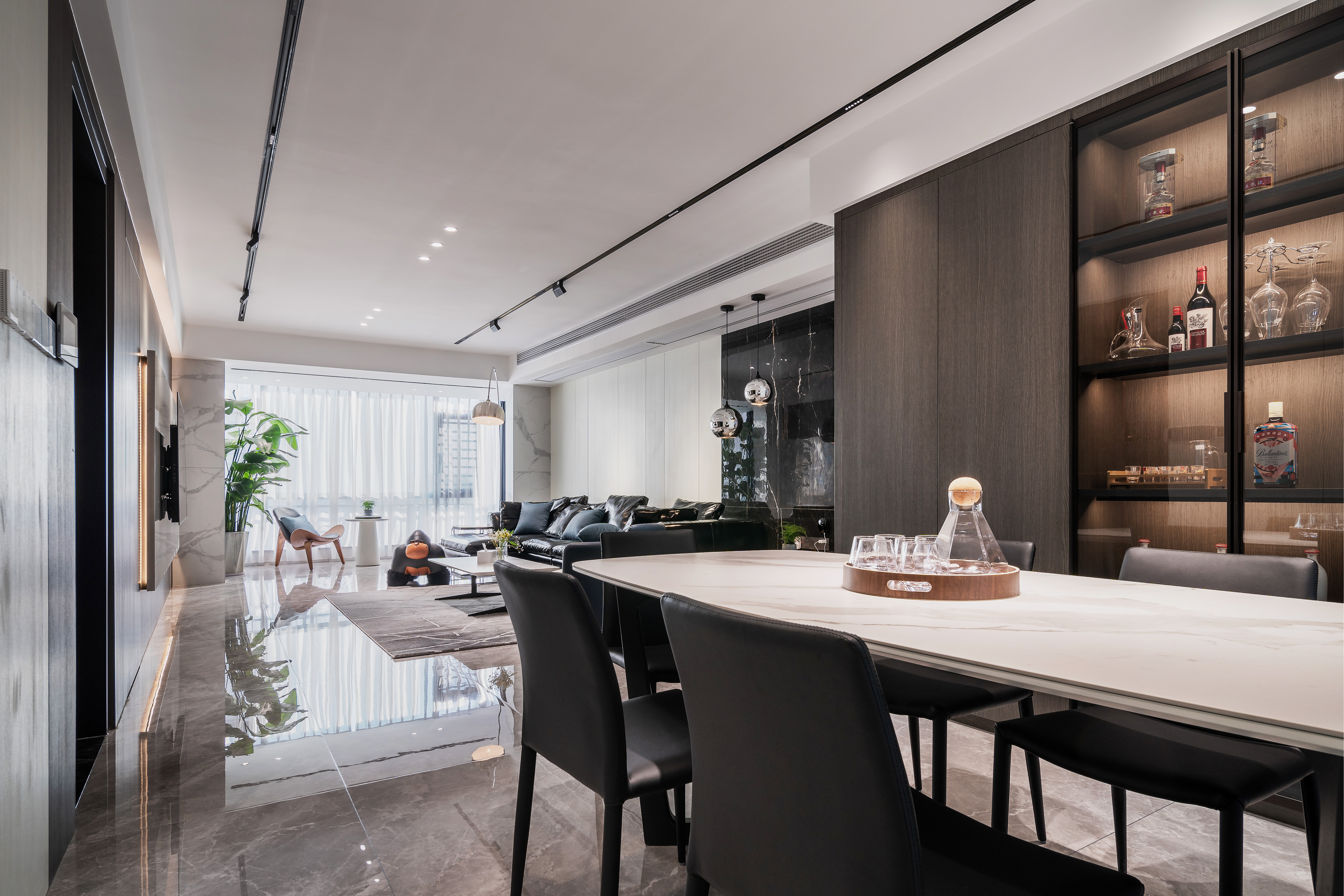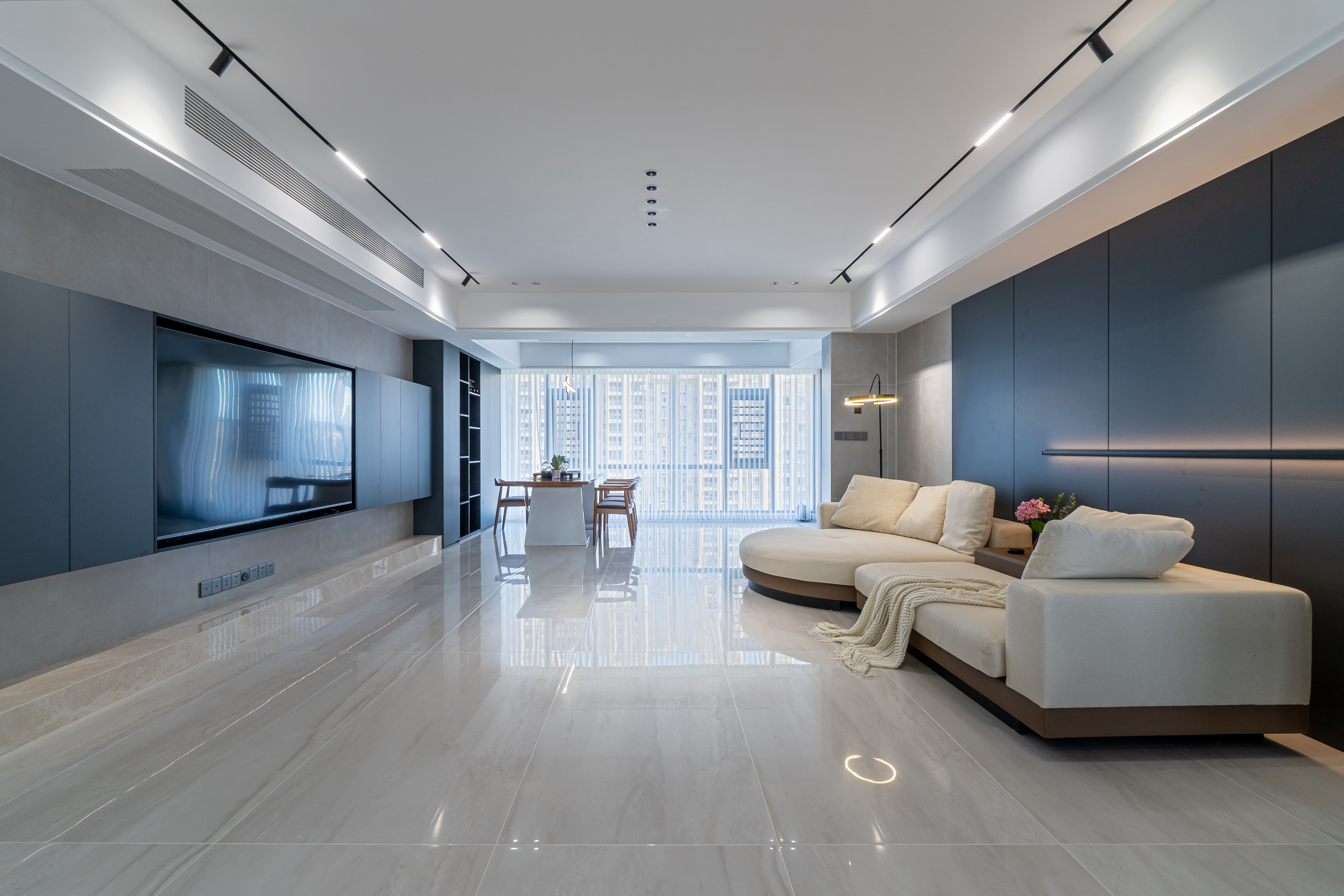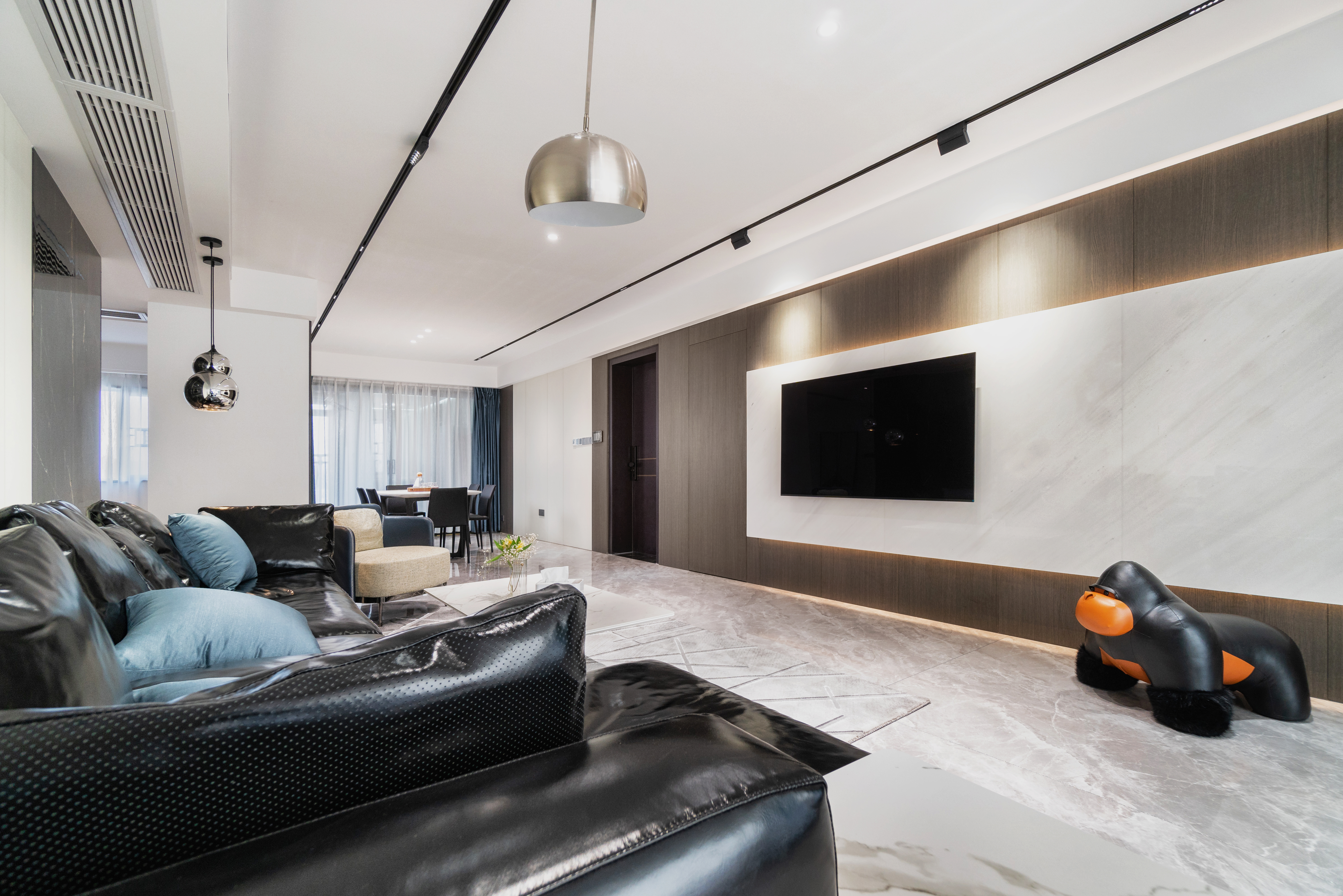 明裝和內(nèi)嵌安裝是無(wú)主燈設(shè)計(jì)的兩種常用方式,如果層高不低于2.6m的情況下,可以選擇吊頂或其他定制柜體,將燈具內(nèi)嵌,使得空間簡(jiǎn)潔高級(jí);在層高不夠的情況下,可以選擇明裝的方式,例如采用軌道燈等,它的優(yōu)點(diǎn)是改裝較為容易,造價(jià)也比嵌入式更低,但易受到原本戶型的布線限制,設(shè)計(jì)有限。